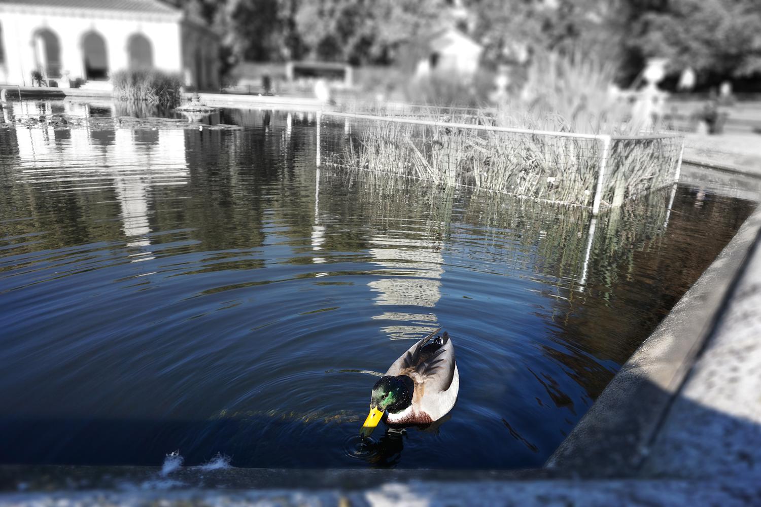 Bathed in golden light, a quiet moment of refreshment — where sun, water, and feather meet. Captured this moment with a Mallard duck at Kensington Gardens, London in 2023.